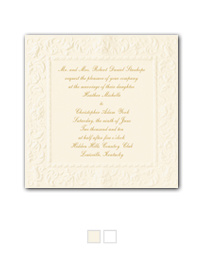 This traditional non-folding card with intricate border design gives your wedding invitation an elegant, Old World look