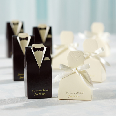 Buy Sample, Ivory Gown and Chocolate Tuxedo Favor Box