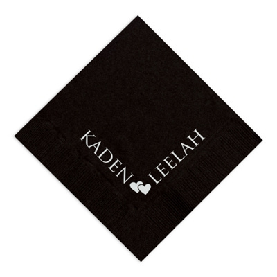 Add an extra touch to your wedding reception. Personalize FREE your first names on high quality personalized paper napkins. Choose from our assortment of bright and bold colors. Our Happy Couple design is perfect for the romantic or heart themed wedding