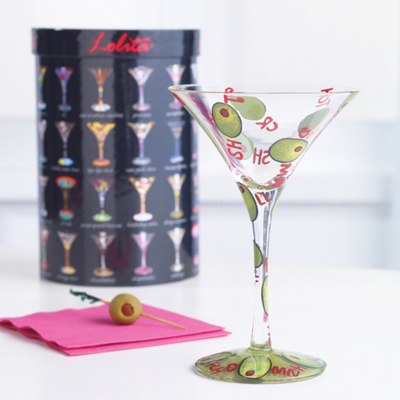 For the ’tini queen in your bridal party, a hand-painted martini glass that’s a party in itself
