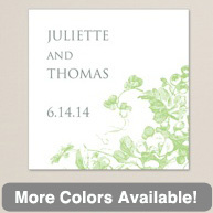 Extend your garden, vintage, spring or summer wedding theme with these floral self-adhesive, 1-3/4" square labels. Customize with your first names and wedding date. Completes our Antique Blossoms wedding invitation suite