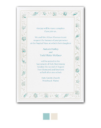 An embossed string of seashells wraps around the edges of this bright white card to create a stunning invitation for your destination wedding. Your wedding details are showcased within the frame