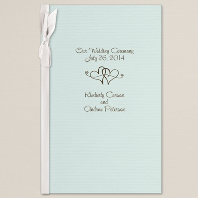 Use ribbon, tags, fonts and motifs to make a personal statement with these versatile wedding program covers