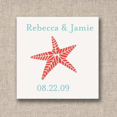 Add the perfect finishing touch to your wedding favors or wedding invitations. Personalize FREE your first names and wedding date in 16 great colors in the lettering style and font shown. Perfect for your summer or destination themed wedding